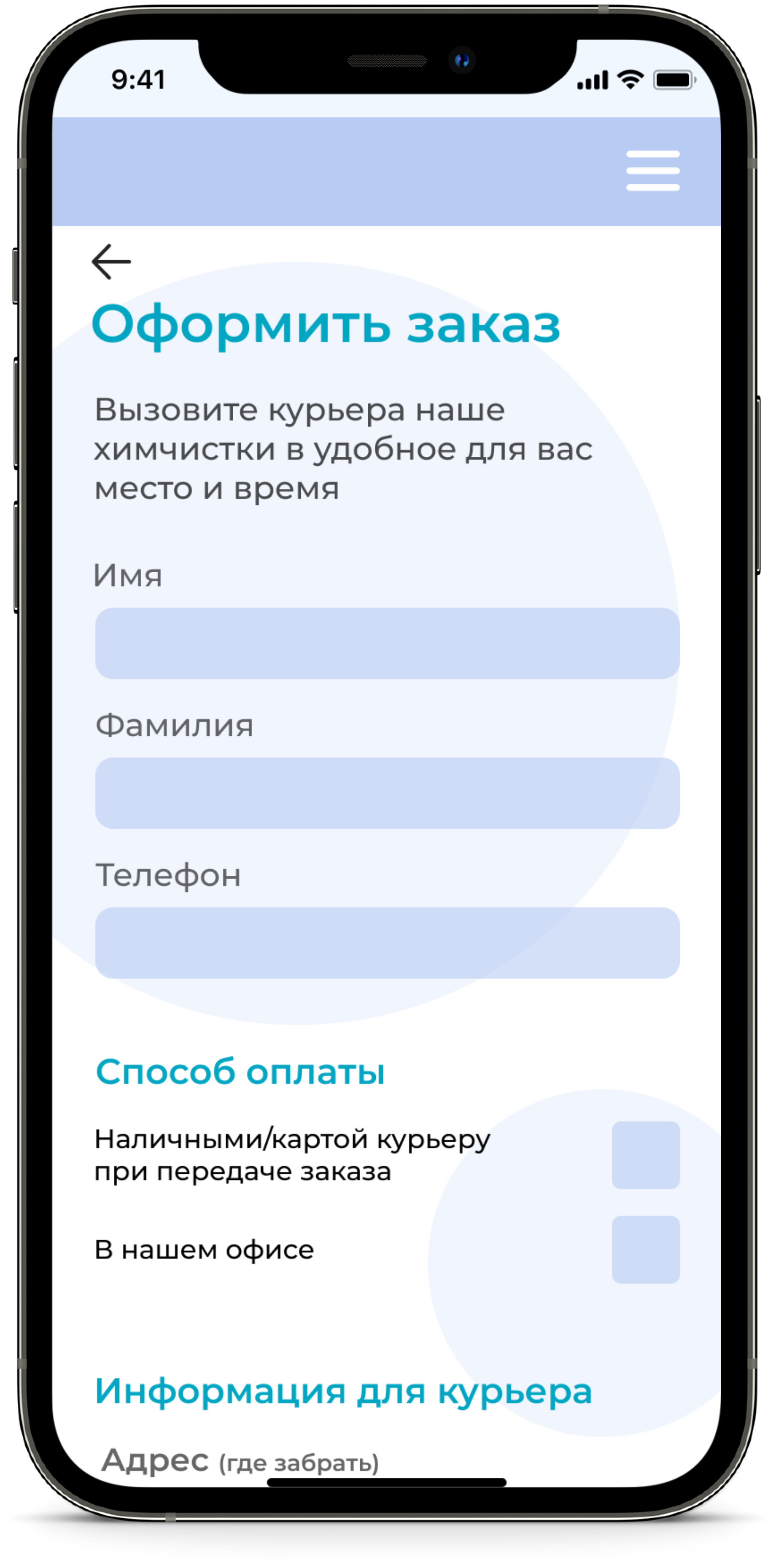 Создать приложение химчистки с вызовом курьера на дом, акциями и бонусами.